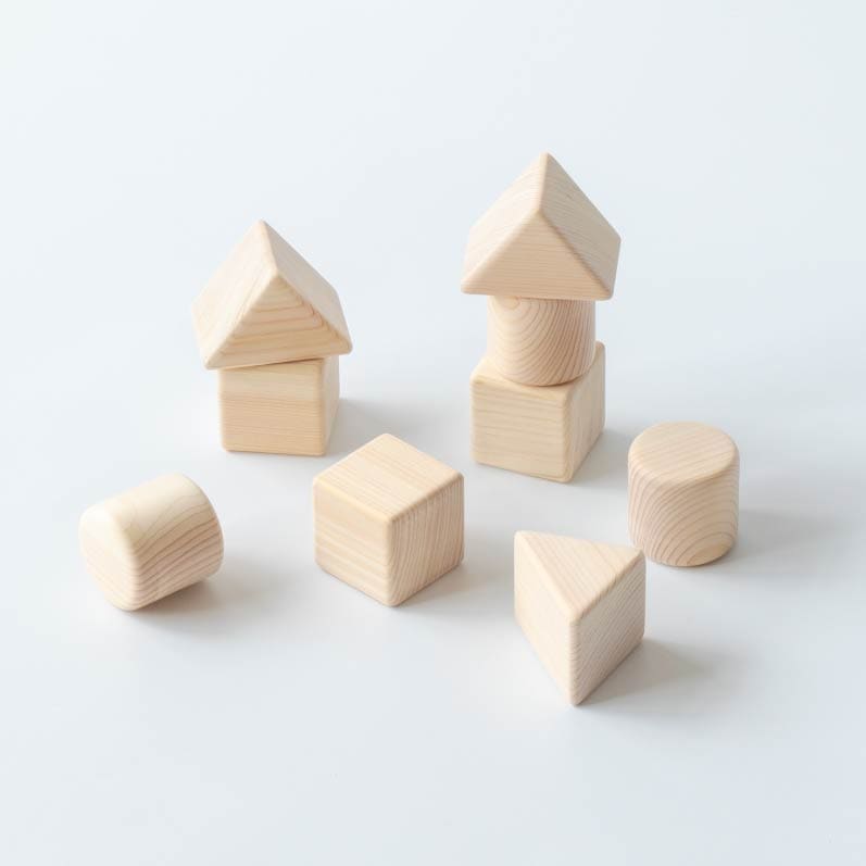 無垢のヒノキ材を、飾らないそのままの姿で積み木にしました。