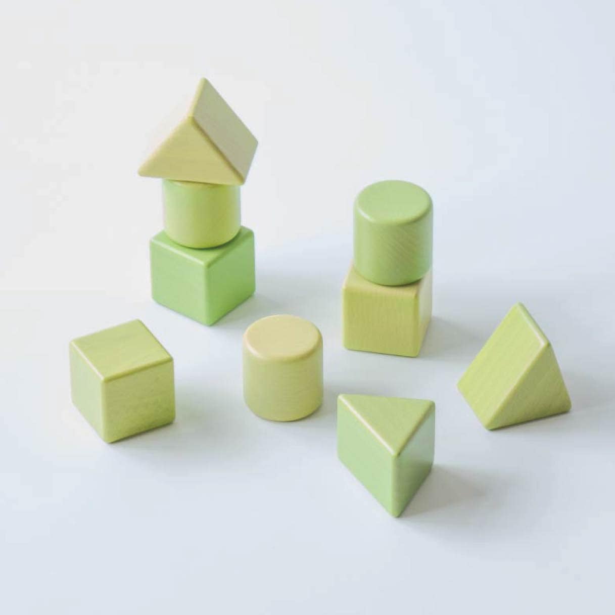 そのため、木材本来の模様や色合いによって、一つひとつの積み木にわずかな色の濃淡が生まれています。
