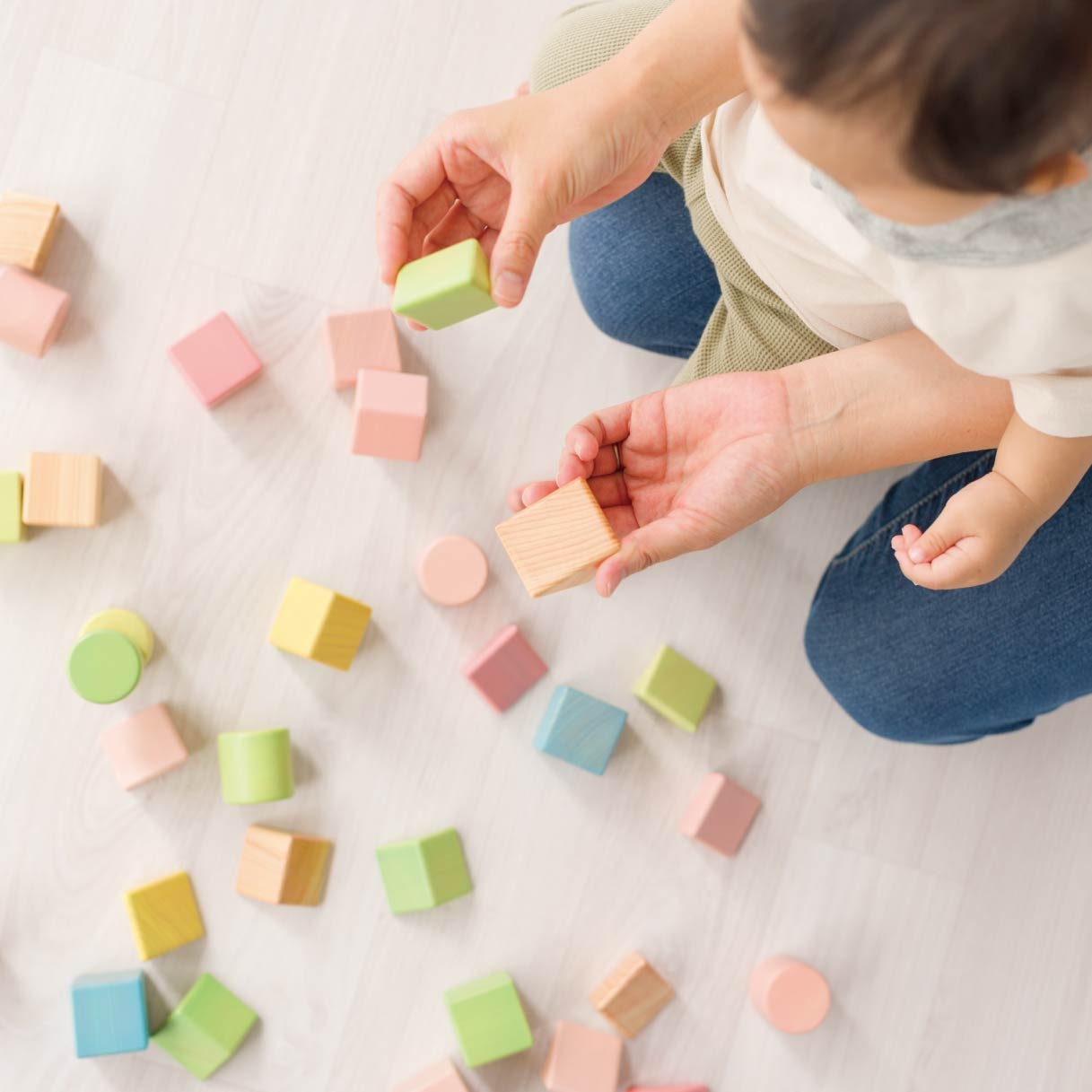 ファーストトイにぴったりな、優しい手触りの積み木です。