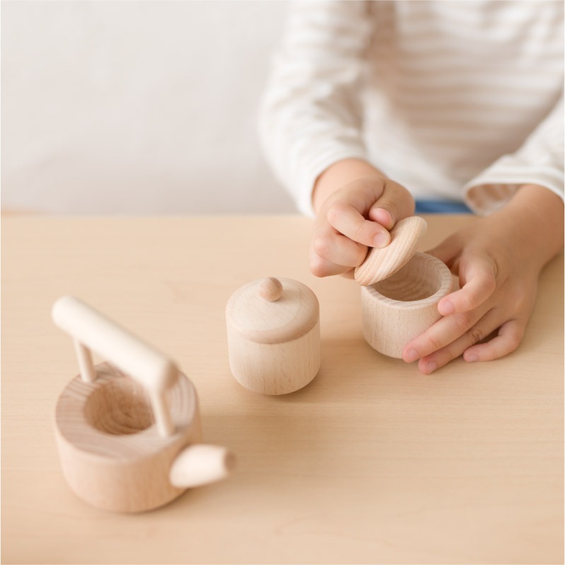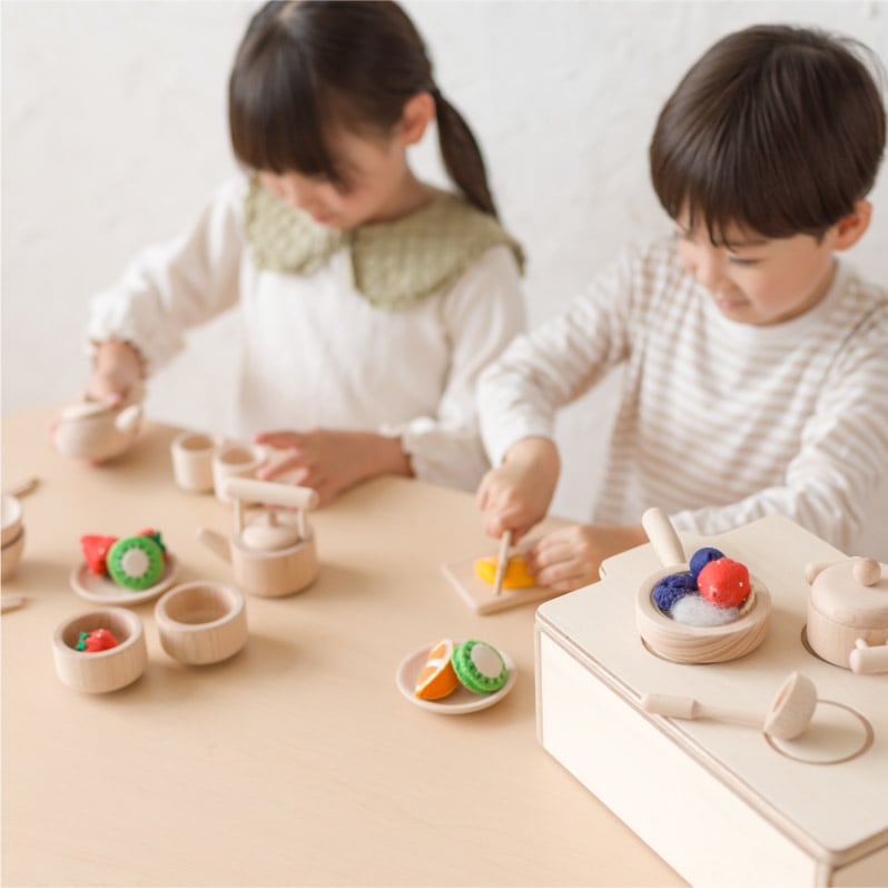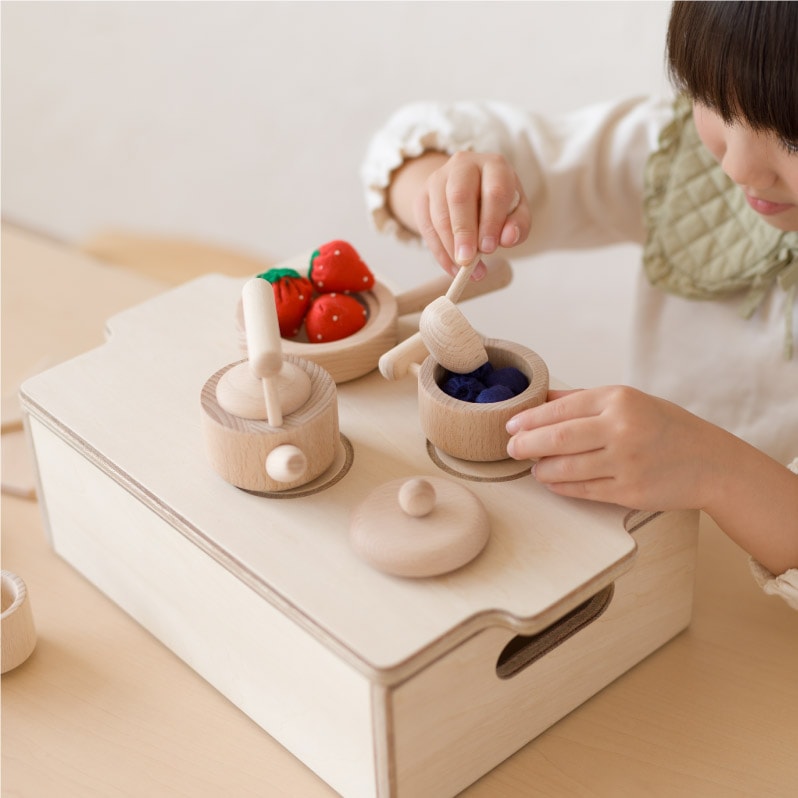 色を足さずとも温かみのあるトーンが、料理ごっこを本格的に見せてくれます。