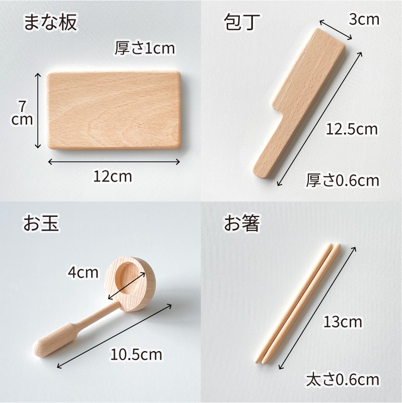このセットでは、おたまや包丁、箸などを使うことで、