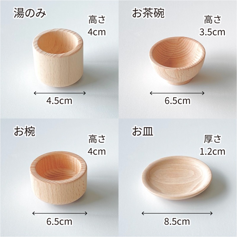 食器類はすべて木そのままの色味に仕上げています。