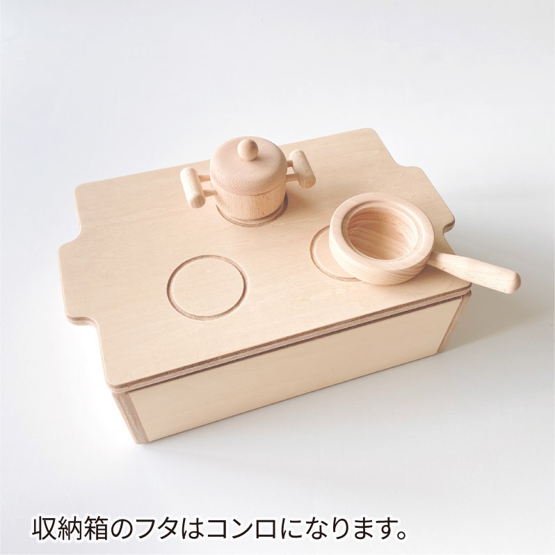 コンロにもなる収納箱付きで、遊んだあとのお片づけもスムーズ。