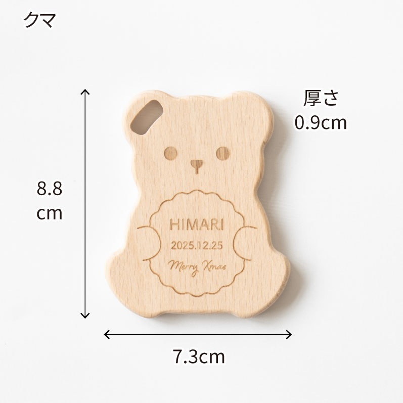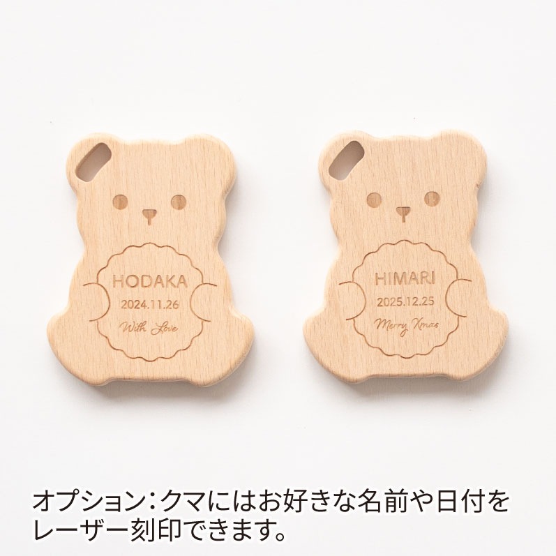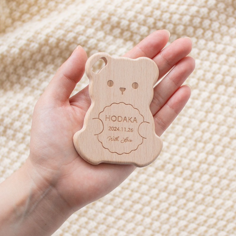 クマの中央部分に「お名前」「日付」「メッセージ」等をレーザー刻印できます。