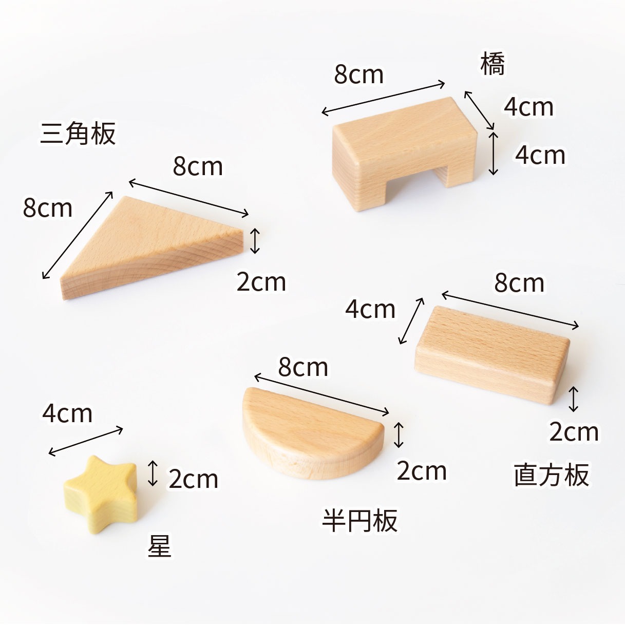 基本の丸三角四角の他に、星型や橋などバリエーション豊かな50ピース入り。